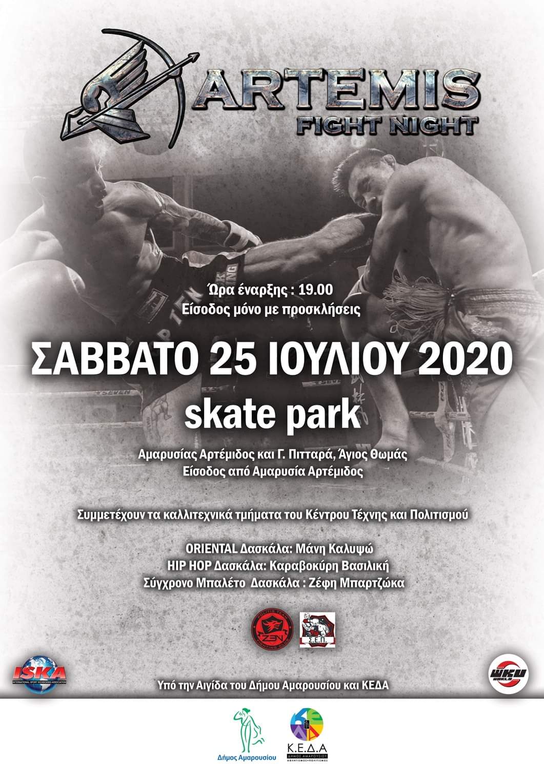 Αρωγός στην προσπάθεια αυτή είναι ο Δήμος Αμαρουσίου, καθώς το event τελεί υπό την αιγίδα του. Συμπαραστάτες θα είναι επίσης οι παγκόσμιες ομοσπονδίες WKU και ISKA με τους κανονισμούς των οποίων θα διεξαχθούν οι αγώνες. Η ISKA μάλιστα ηγείται κορυφαίων διεθνών διοργανώσεων όπως το Glory, Bellator, K1, Oktagon κ.α.