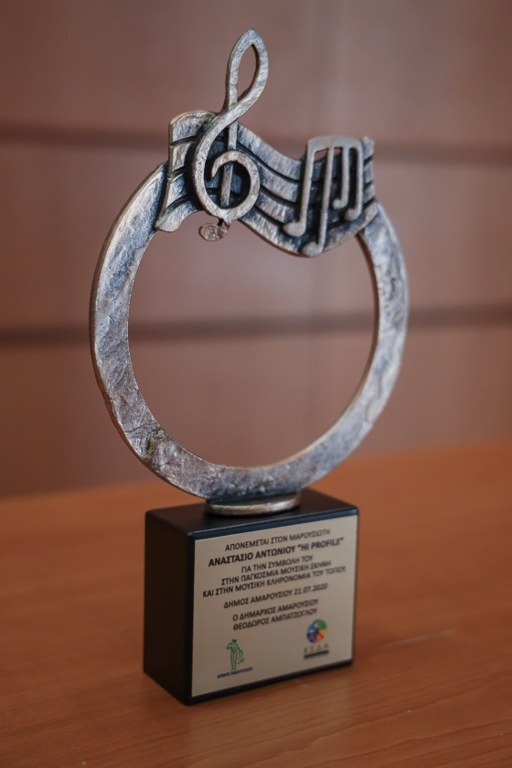 Τιμητικό βραβείο απένειμε ο Δήμαρχος Αμαρουσίου Θεόδωρος Αμπατζόγλου στον Μαρουσιώτη διεθνούς φήμης μουσικό παραγωγό Αναστάσιο (Τάσο) Αντωνίου γνωστό με το όνομα “Hi Profile”, κατά τη διάρκεια ειδικής εκδήλωσης που διοργάνωσε η Κοινωφελής Επιχείρηση Δήμου Αμαρουσίου (ΚΕΔΑ) στην αίθουσα του Κέντρο Τέχνης και Πολιτισμού του Δήμου, παρουσία φίλων και συγγενών του καλλιτέχνη.