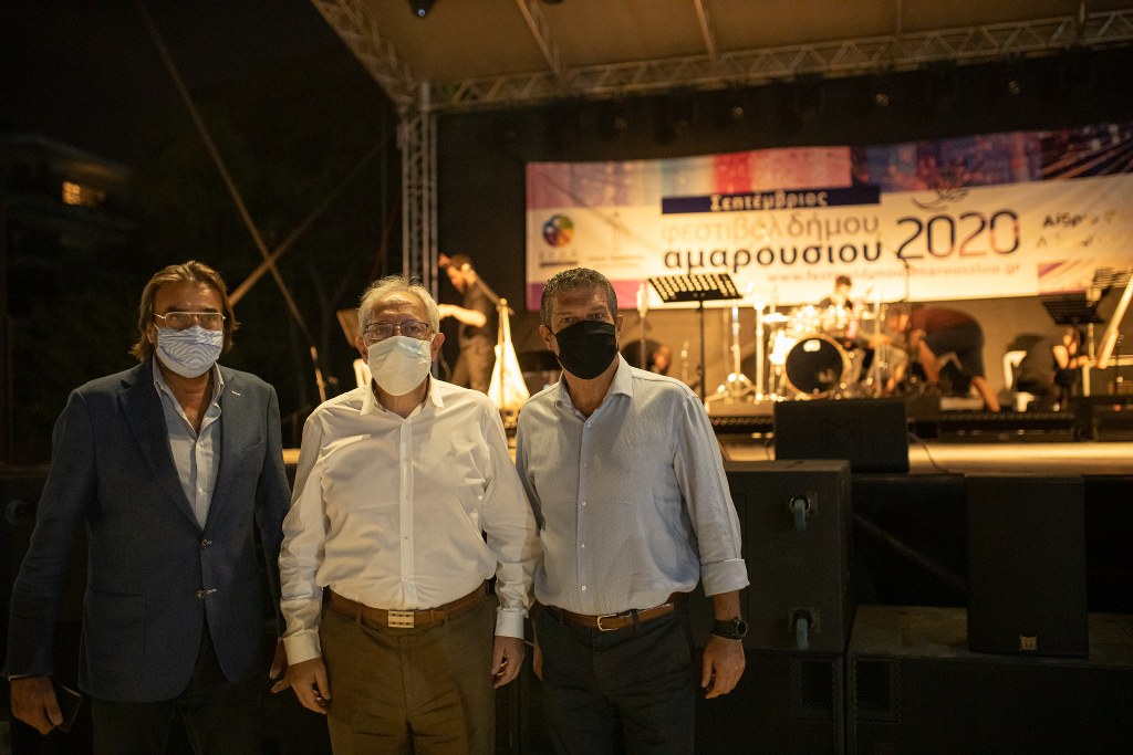 - Την Ελένη Βιτάλη και τον Δημήτρη Μπάση συνεχάρη ο Πρόεδρος της ΚΕΔΑ Νίκος Πέππας εκπροσωπώντας τον Δήμαρχο Αμαρουσίου Θεόδωρο Αμπατζόγλου μετά το πέρας της σπάνιας κοινής “συνάντησης” τους, στο «Φεστιβάλ Δήμου Αμαρουσίου 2020», την Τετάρτη 9 Σεπτ. που ταξίδεψε το κοινό μέσα από τις ερμηνείες τους σε αγαπημένα τραγούδια από την προσωπική τους δισκογραφία αλλά και τραγούδια μεγάλων δημιουργών. Ο κ. Ν. Πέππας, ειδική αναφορά έκανε στα διαφορετικά είδη κοινού που καλύπτουν οι θεατρικές και μουσικές παραστάσεις του Φεστιβάλ του Αμαρουσίου, γεγονός που το κάνουν μοναδικό στα Βόρεια Προάστια και που λόγω και των αυστηρών υγειονομικών μέτρων το κάνουν ιδιαίτερα ασφαλές.