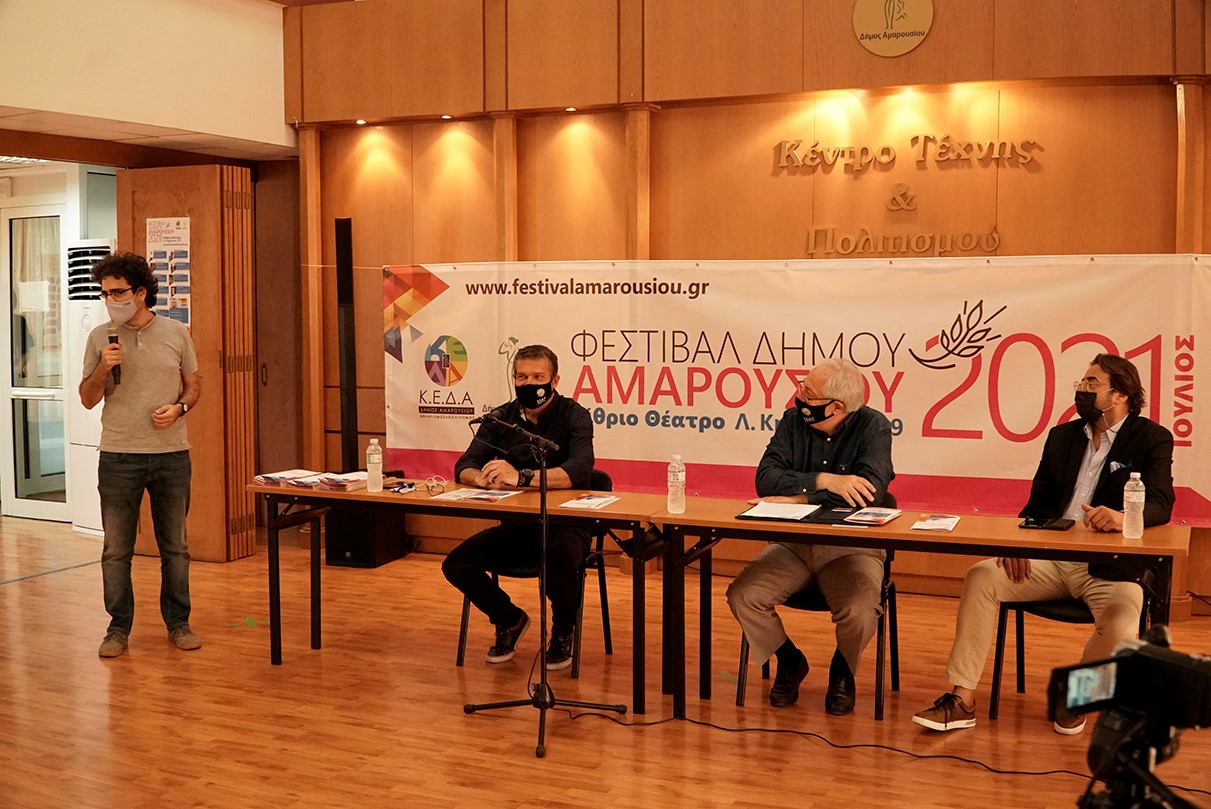 Τις 14 μοναδικές παραστάσεις που θα φιλοξενήσει το Φεστιβάλ του Δήμου Αμαρουσίου παρουσίασε ο Δήμαρχος Αμαρουσίου κ. Θεόδωρος Αμπατζόγλου και ο Πρόεδρος της Κοινωφελούς Επιχείρησης του Δήμου Αμαρουσίου και υπεύθυνος του προγράμματος κ. Νίκος Πέππας στη Συνέντευξη Τύπου που διοργανώθηκε ενόψει της έναρξης του πολιτιστικού προγράμματος.