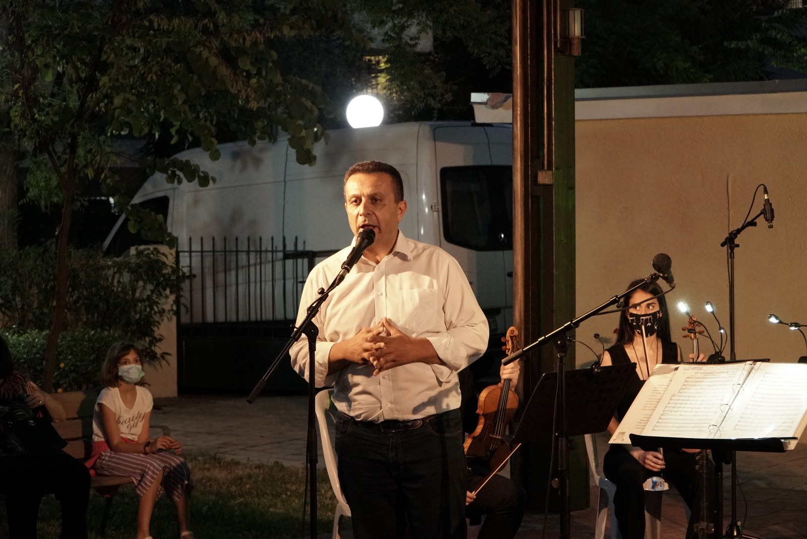 Στη μουσική βραδιά παραβρέθηκαν ακόμη ο Πρόεδρος του ΟΙΚΟΙΠΑΔΑ Πέτρος Κόνιαρης, η Γραμματέας του Δημοτικού Συμβουλίου Κατερίνα Βουρλάκη, η Δημοτική Σύμβουλος Μάντυ Ρώτα και η Σύμβουλος του Δημάρχου επί θεμάτων Πολιτισμού Άννα Βαγιωνά.