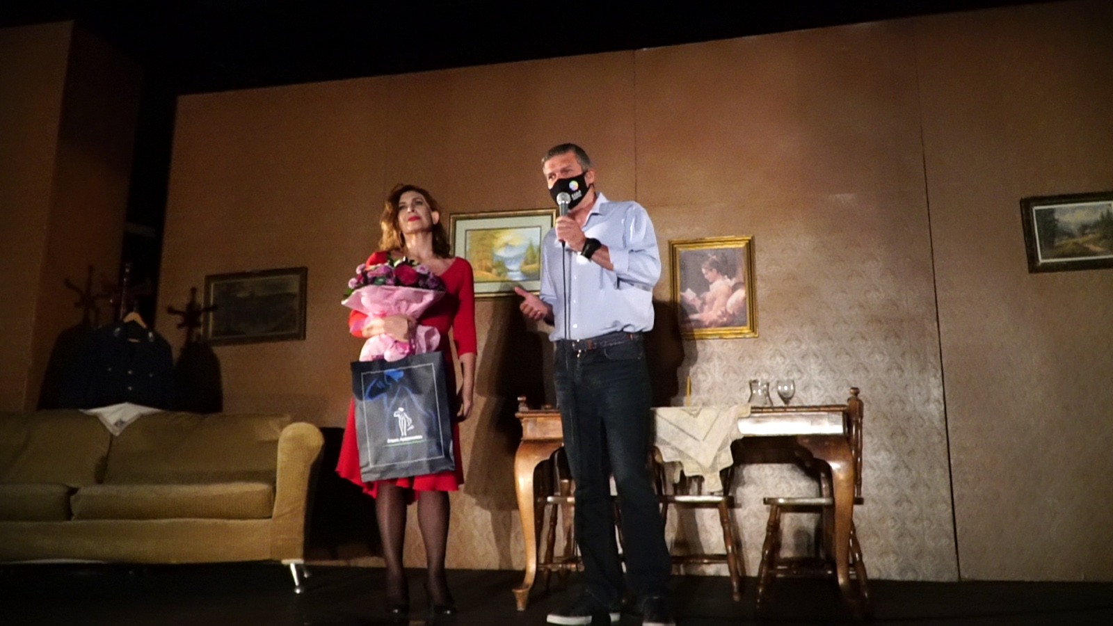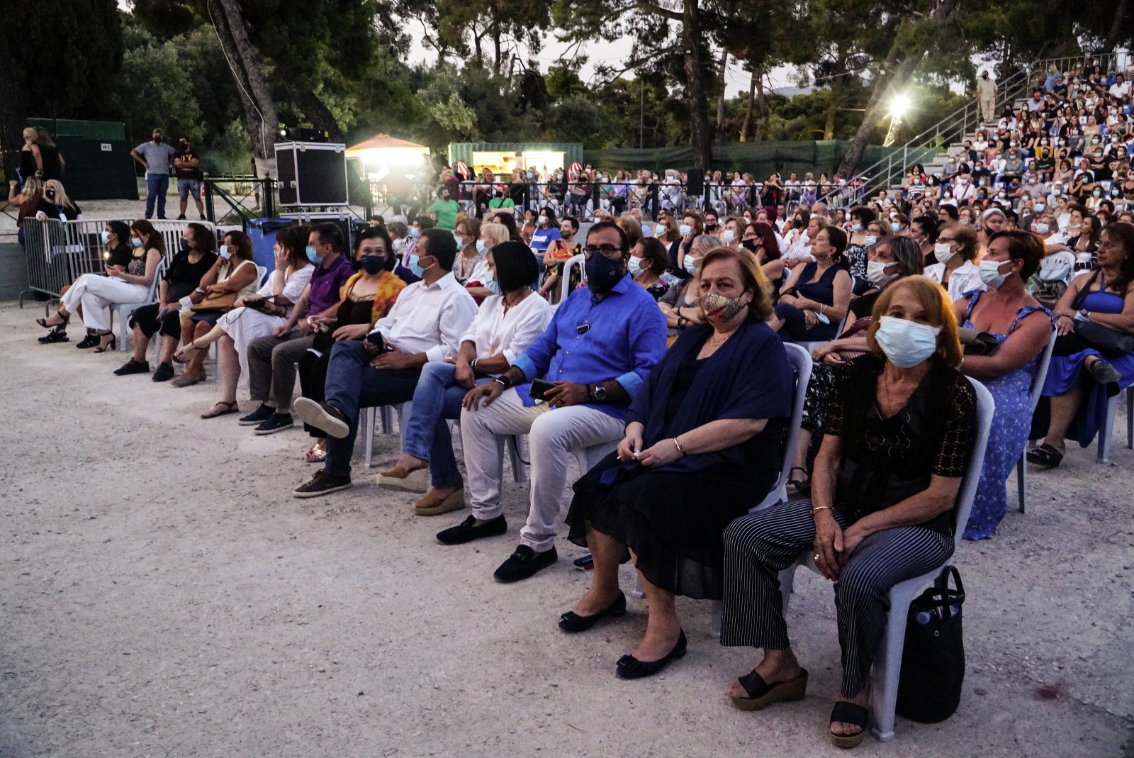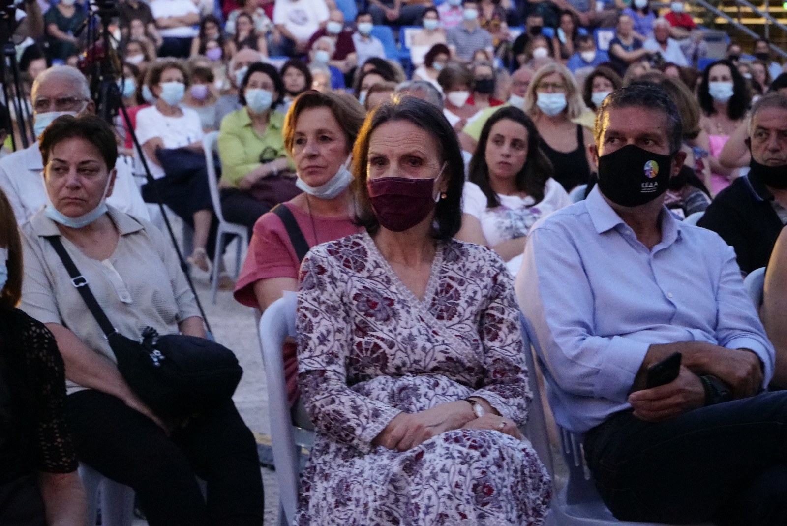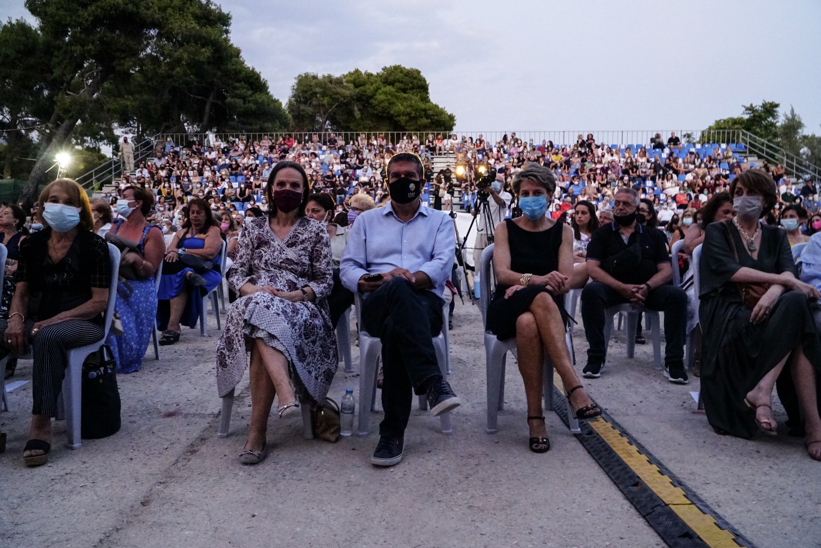 Τους χαιρετισμούς του Δημάρχου Αμαρουσίου Θεόδωρου Αμπατζόγλου μετέφερε στους εκατοντάδες θεατές, ο Πρόεδρος της Κοινωφελούς Επιχείρησης του Δήμου (ΚΕΔΑ) Νίκος Πέππας ενώ συνεχάρη επίσης την Κατερίνα Διδασκάλου για την εκπληκτική ερμηνεία της. Ακόμη ενημέρωσε το κοινό για τις επικείμενες παραστάσεις του θερινού Φεστιβάλ Αμαρουσίου 2021.