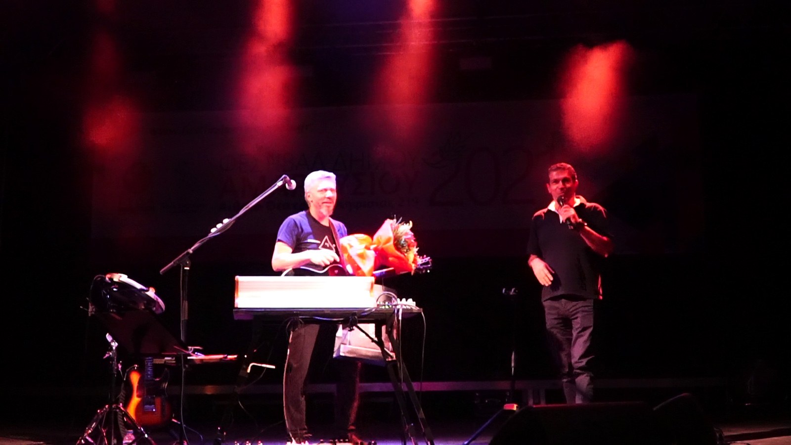 Τους χαιρετισμούς του Δημάρχου Αμαρουσίου Θεόδωρου Αμπατζόγλου μετέφερε στους θεατές ο Πρόεδρος της ΚΕΔΑ Νίκος Πέππας, ενώ συνεχάρη τον καλλιτέχνη για την υπέροχη παράσταση.