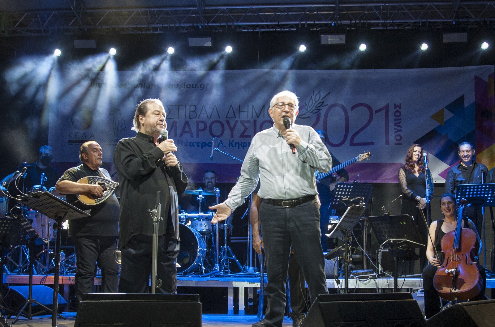 Ο Δήμαρχος Αμαρουσίου Θεόδωρος Αμπατζόγλου μετά το πέρας της μουσικής παράστασης, ευχαρίστησε το κοινό για τη θερμή του υποστήριξη στο θεσμό του Φεστιβάλ, αλλά και σε όλες τις πολιτιστικές βραδιές του Δήμου και εξήρε το ταλέντο του δημοφιλή καλλιτέχνη, την προσφορά του στο σύγχρονο ελληνικό τραγούδι.