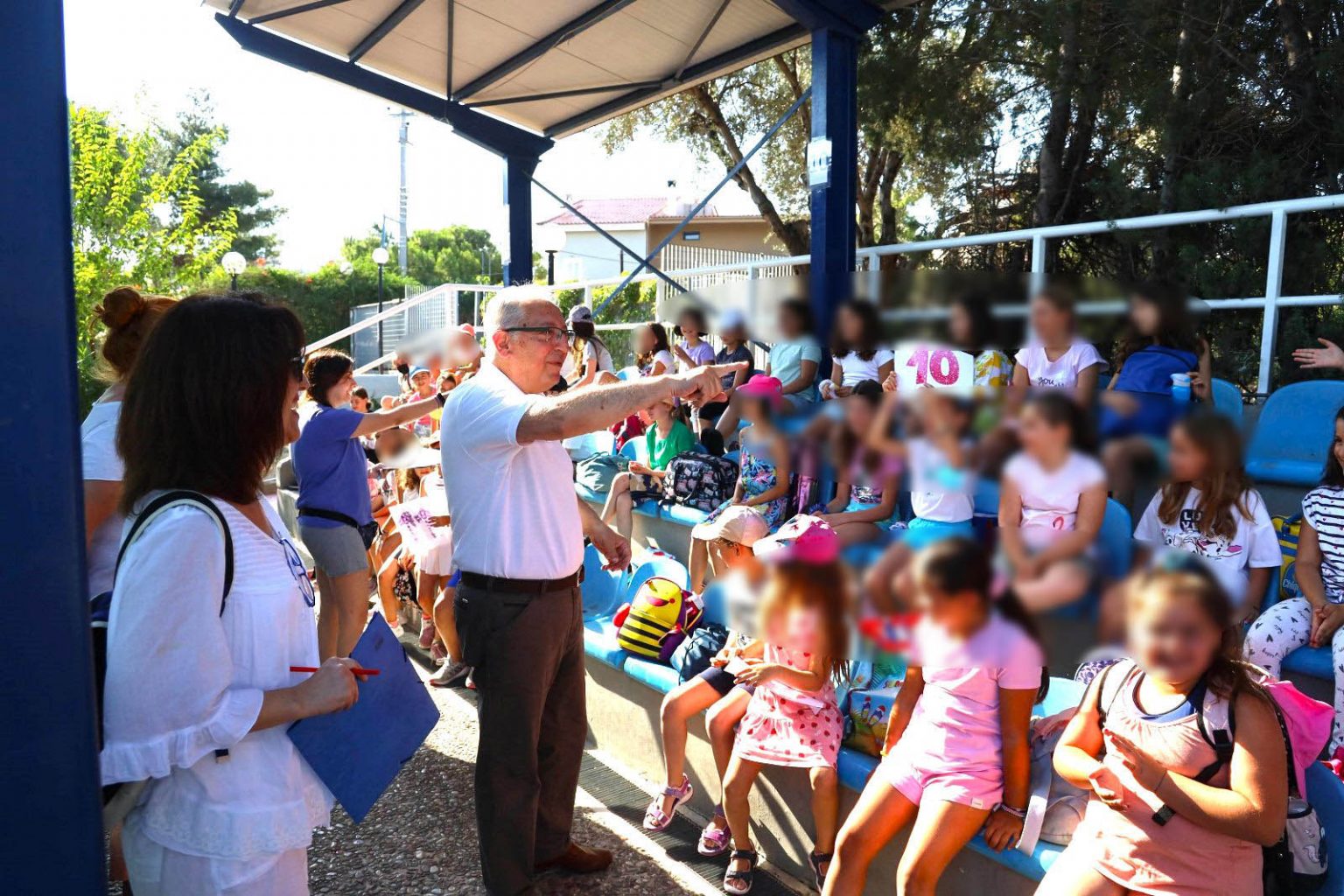 Συγκεκριμένα, τον κ. Θ. Αμπατζόγλου υποδέχτηκαν πολλές δεκάδες παιδιά στο χώρο του Δημοτικού Κολυμβητηρίου λίγο πριν ξεκινήσουν τις δραστηριότητές τους.