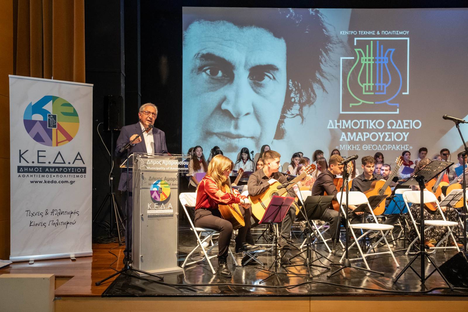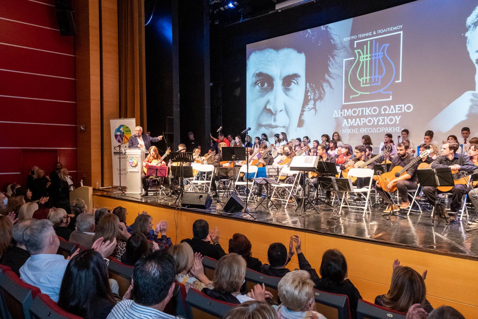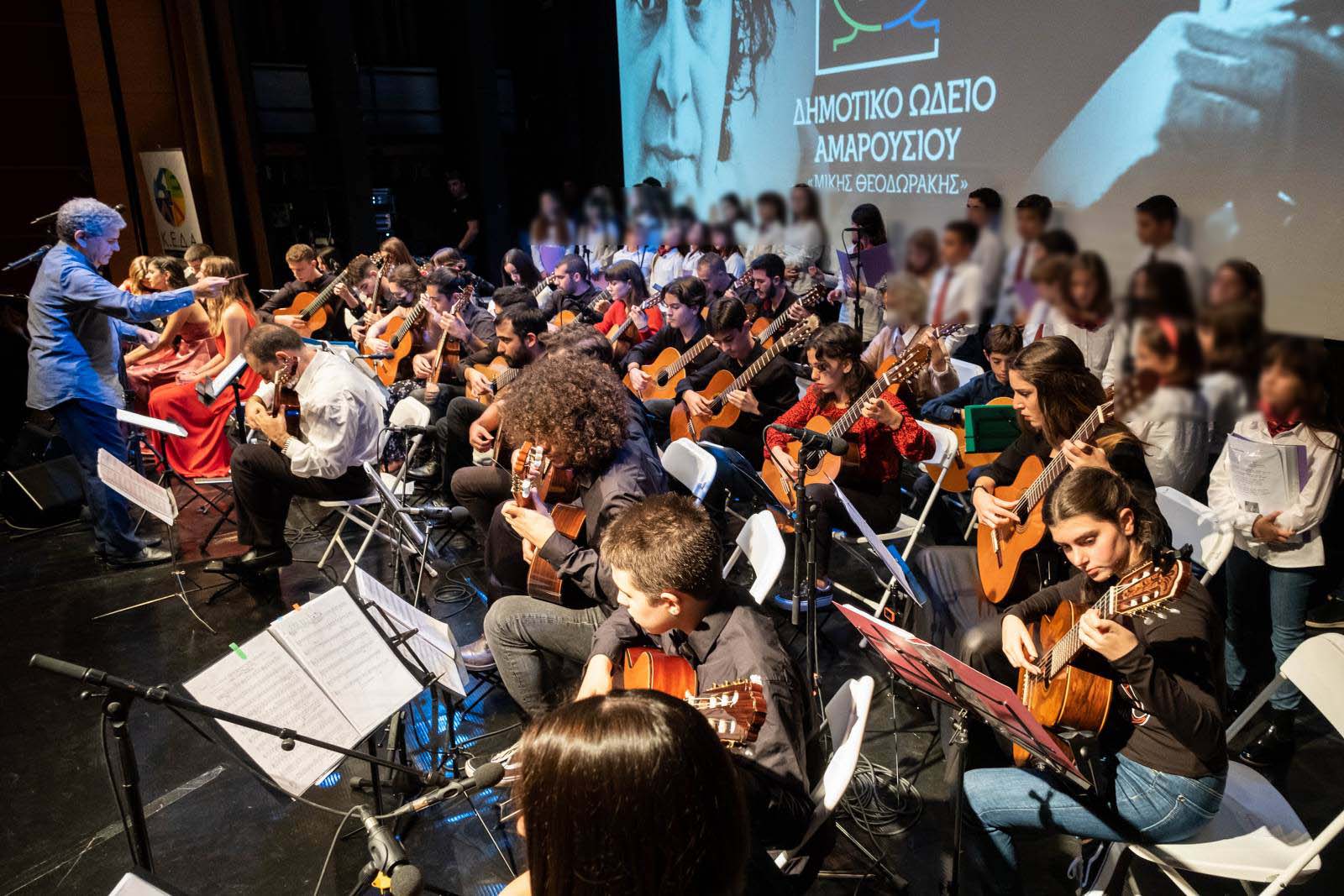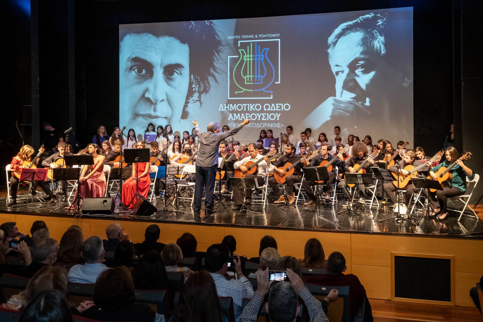 Εμβληματικά έργα των δύο σημαντικότερων Ελλήνων μουσικοσυνθετών του Μίκη Θεοδωράκη και του Μάνου Χατζιδάκι ερμήνευσε η Κιθαριστική Ορχήστρα του Δημοτικού Ωδείου Αμαρουσίου «Μίκης Θεοδωράκης», με τη συμμετοχή της Παιδικής Χορωδίας του Ωδείου, στη συναυλία που διοργάνωσε ο Δήμος Αμαρουσίου και η Κοινωφελής Επιχείρηση (ΚΕΔΑ) με τίτλο: «Φθινοπωρινές Νότες» το Σάββατο 19 Νοεμβρίου 2022 στον στον πολυχώρο ΔΑΪΣ.