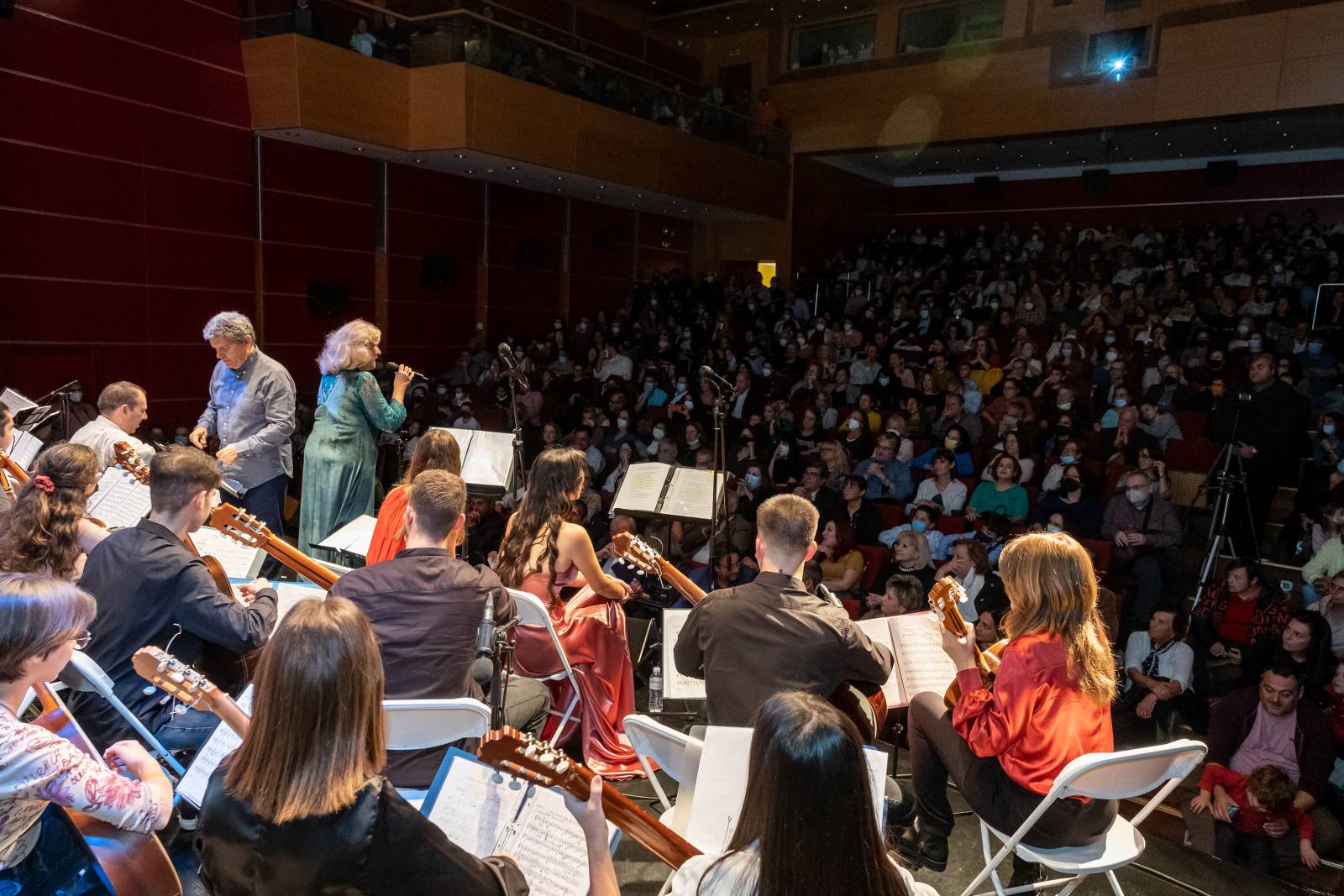 Οι 100 κιθαρίστες, υπό τη διεύθυνση του συνθέτη, κιθαριστή και καθηγητή Βαγγέλη Μπουντούνη, ο σολίστ Βασίλης Μαστοράκης, οι Σοπράνο Βασιλική Καραγιάννη και Άννα Κατσούλη, με την Φωτεινή Κοσκόρου καλλιτεχνική διευθύντρια του Δημοτικού Ωδείου που είχε τη μουσική επιμέλεια της συναυλίας, χάρισαν στο κοινό που κατέκλυσε τον πολυχώρο, μια αξέχαστη και συναρπαστική βραδιά, σε μια μεγάλη γιορτή για την κιθάρα.