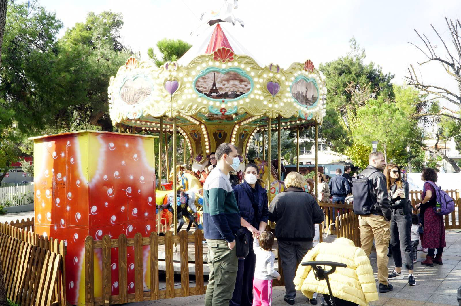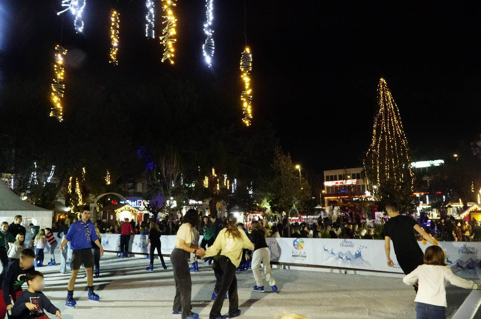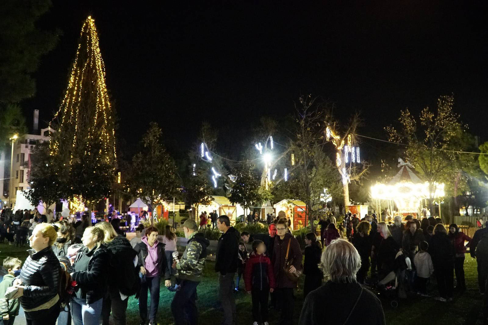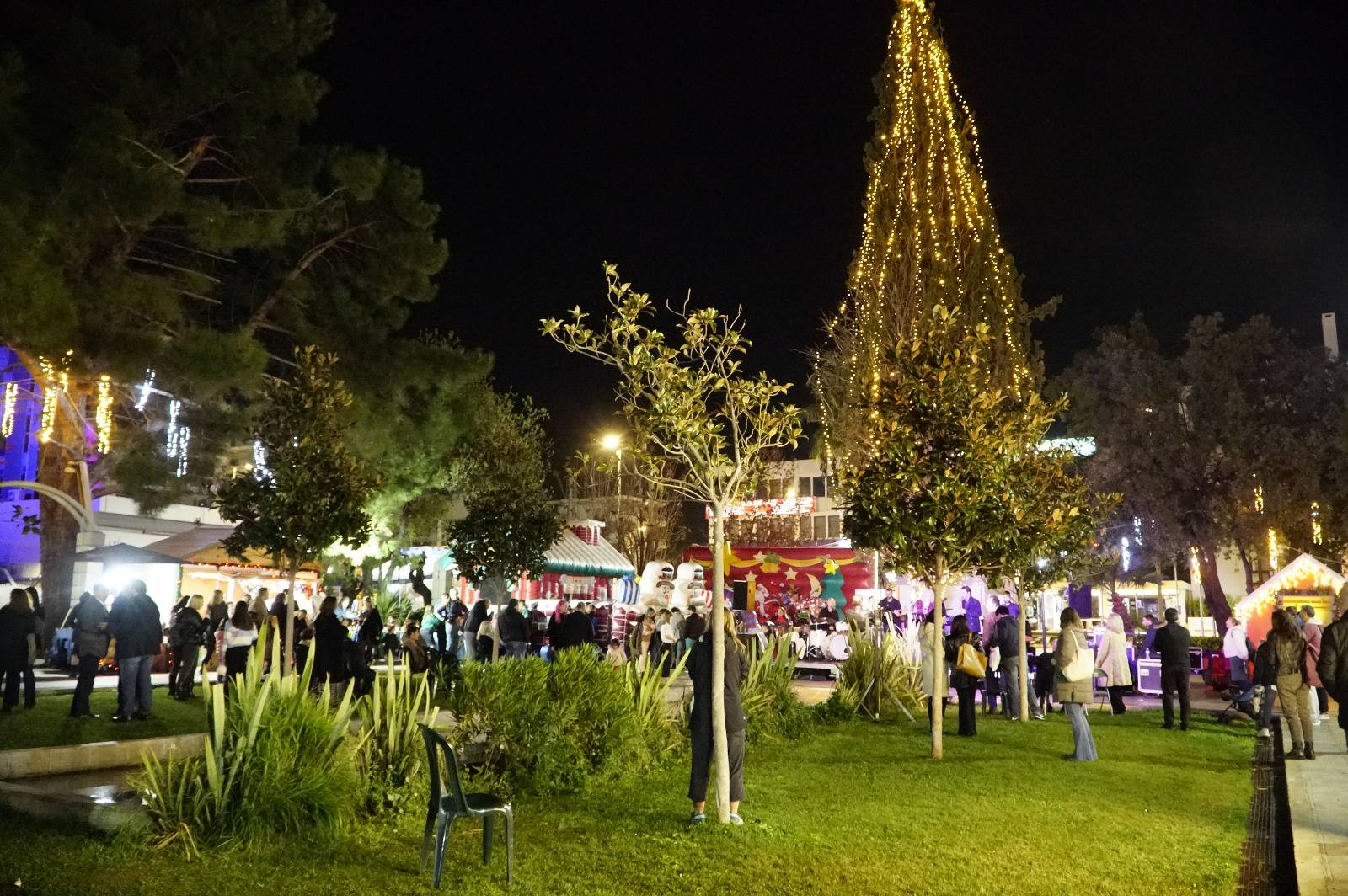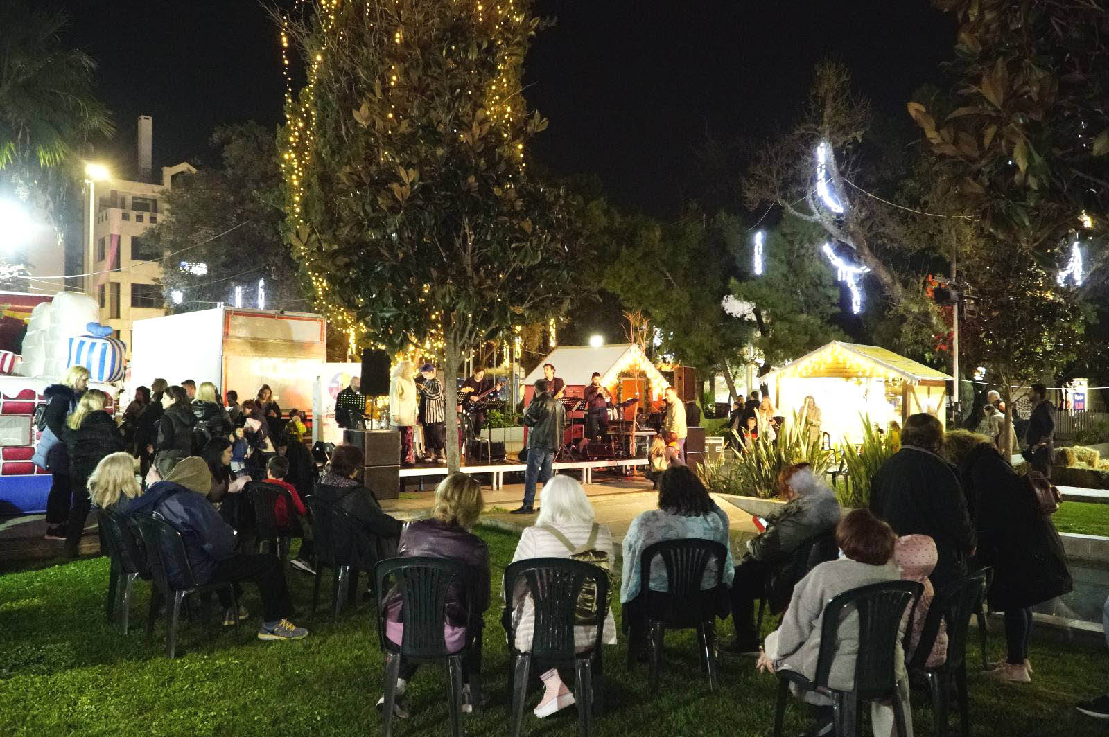 Πλήθος κόσμου στη Μουσική Εκδήλωση «Γιορτινές Μελωδίες» στο Χριστουγεννιάτικο Χωριό του Δήμου Αμαρουσίου στην πλατεία Αγίας Λαύρας στις 17 Δεκεμβρίου 2022.