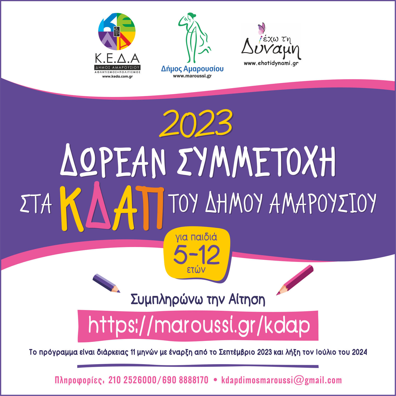 Όσοι γονείς ενδιαφέρονται να έχουν υποστήριξη στην σύνταξη του φακέλου παρακαλούνται να συμπληρώσουν στην αίτηση εκδήλωσης ενδιαφέροντος https://maroussi.gr/kdap.