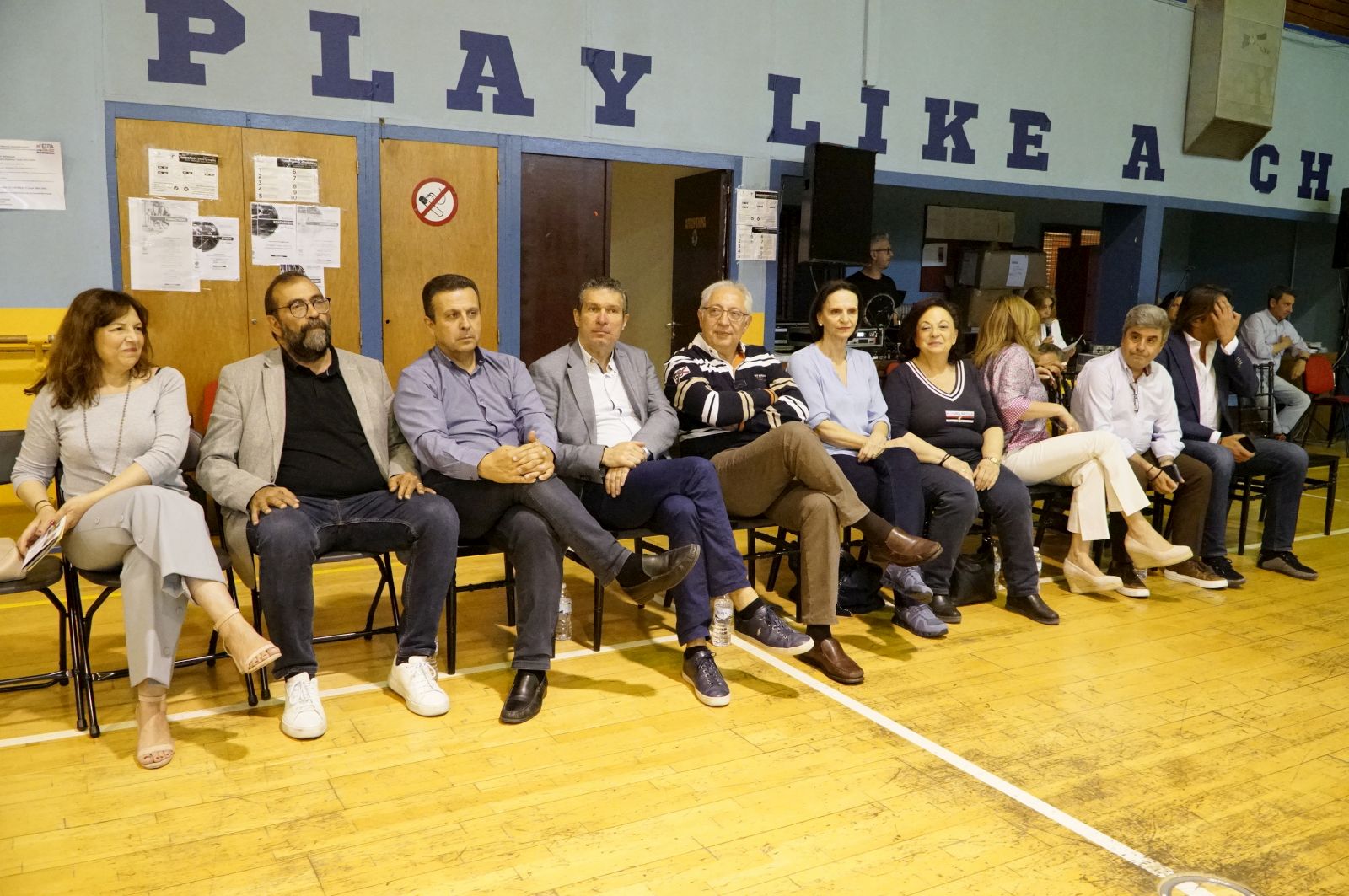 Ο Πρόεδρος του Δημοτικού Συμβουλίου Δημήτρης Σμυρνής, ο Αντιδήμαρχος Οικονομικών Σπύρος Σταθούλης, η Αντιδήμαρχος Αθλητισμού & Πολιτισμού Ρένα Χαλιώτη, η γραμματέας του Δημοτικού Συμβουλίου Μαρία Δήμητρα Ρώτα, ο Πρόεδρος του ΟΙΚΟΙΠΑΔΑ Πέτρος Κόνιαρης, η Πρόεδρος της Δημοτικής Επιτροπής Παιδείας και της Επιτροπής Ισότητας και μέλος Δ.Σ. ΚΕΔΑ Ελένη Λέκκα, η Αντιπρόεδρος της ΚΕΔΑ Κατερίνα Βουρλάκη, ο Δημοτικός Σύμβουλος Γιάννης Νικολαράκος.