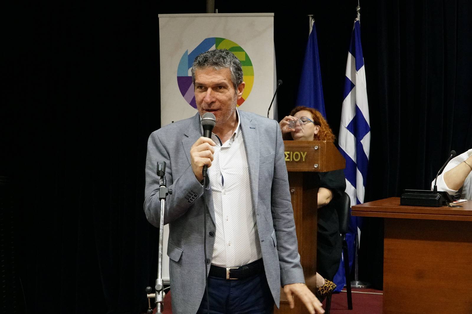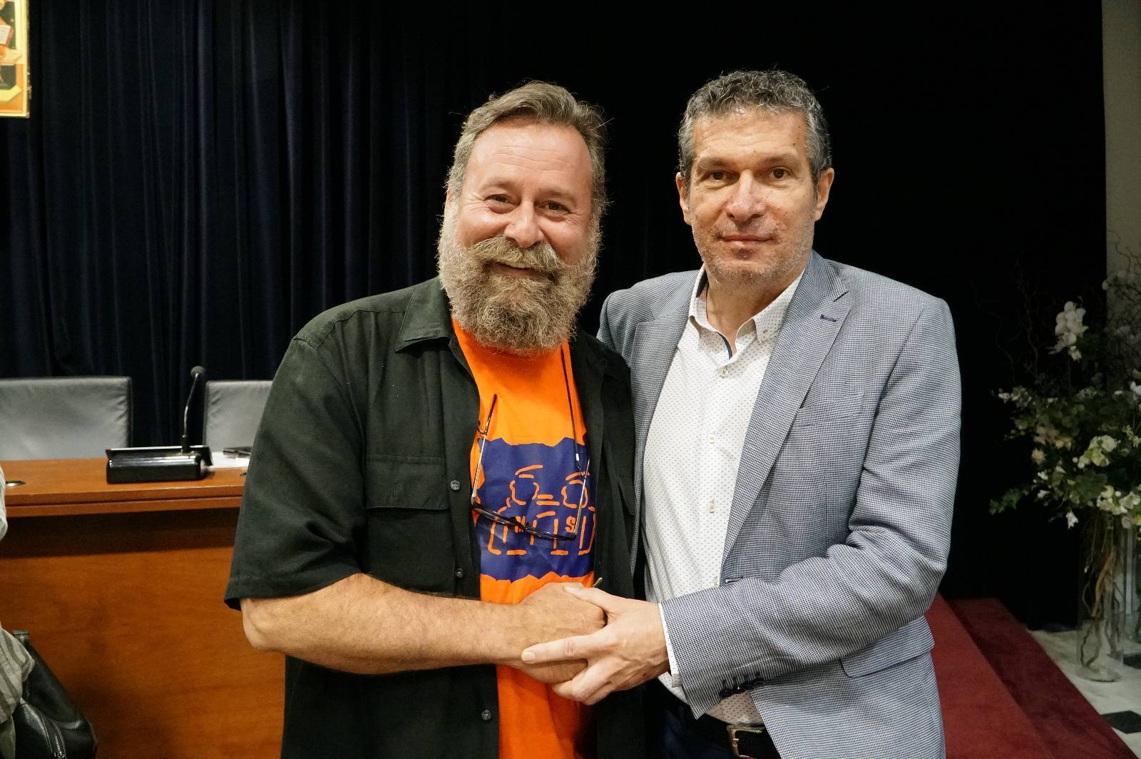 Η κεντρική ομιλήτρια Φίλια Μητρομάρα έκανε την παρουσίαση στην εκδήλωση με την άμεση συμμετοχή του συγγραφέα, καλώντας τον να απαντήσει σε καίρια θέματα της εποχής.