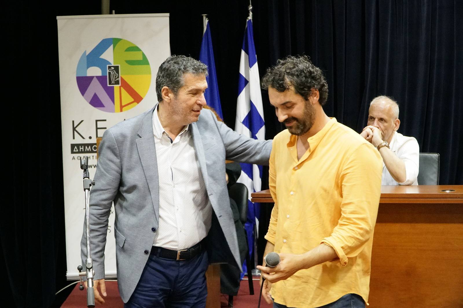Ο Πρόεδρος της ΚΕΔΑ (Κοινωφελούς Επιχείρησης Δήμου Αμαρουσίου) Νίκος Πέππας μετέφερε το θερμό χαιρετισμό του Δημάρχου Θεόδωρου Αμπατζόγλου και συνεχάρη τον πολυτάλαντο, όπως αποκάλεσε τον Στέφανο Κακαβούλη, καλλιτέχνη του οποίου η συνεργασία εδώ και αρκετά χρόνια σφραγίζεται με εμπιστοσύνη. Τέλος παρότρυνε τους παρευρισκόμενους στην αίθουσα για την παρακολούθηση-ανάπτυξη του τμήματος «Σκηνοθεσίας, Υποκριτικής στο Φακό και Δημιουργικής Γραφής» τις χρονιές που ακολουθούν, διότι όπως είπε «…από μόνος του ο Στέφανος Κακαβούλης παράγει πολιτισμό στο Δήμο Αμαρουσίου..», ευχόμενος στη συνέχεια καλή πορεία στο εκπληκτικό βιβλίο που ήδη κυκλοφορεί.