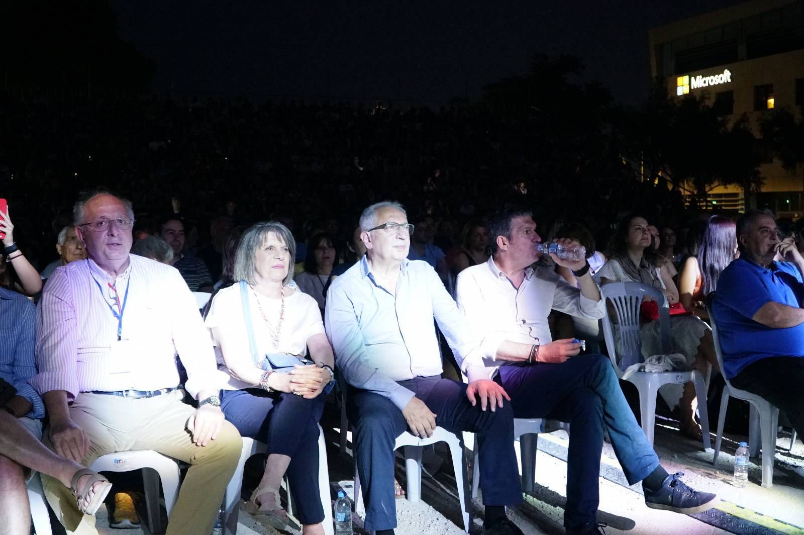 Τον Έλληνα ερμηνευτή της έντεχνης και λαϊκής μουσικής, συνόδευσαν στο τραγούδι η Μυρτώ Βασιλείου και η Δήμητρα Μπουλούζου που με την καλλιτεχνική τους βαθιά ενσυναίσθηση και την αγάπη τους για τη μουσική ξεχώρισαν σε μία μοναδική παράσταση. Μέσα από ένα πλούσιο ρεπερτόριο καθώς και τραγούδια από την τηλεοπτική σειρά «Σασμός» καθήλωσαν τους 2.500 και πλέον θεατές που γέμισαν το Αίθριο Θέατρο Αμαρουσίου.