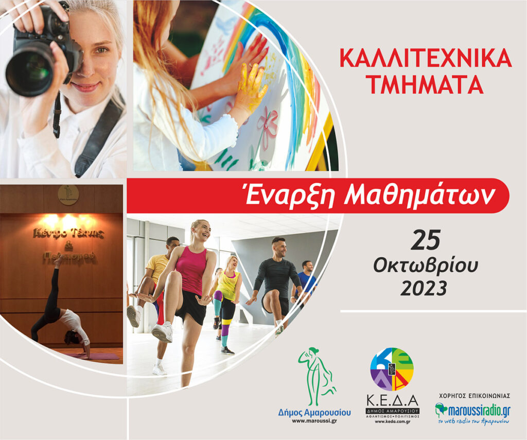 Τετάρτη, 25 Οκτωβρίου 2023: Έναρξη μαθημάτων στα Καλλιτεχνικά Τμήματα, τα Τμήματα Ρυθμικής και Μπαλέτου του Κέντρου Τέχνης και Πολιτισμού Δήμου Αμαρουσίου και του Δημοτικού Ωδείου «Μίκης Θεοδωράκης»