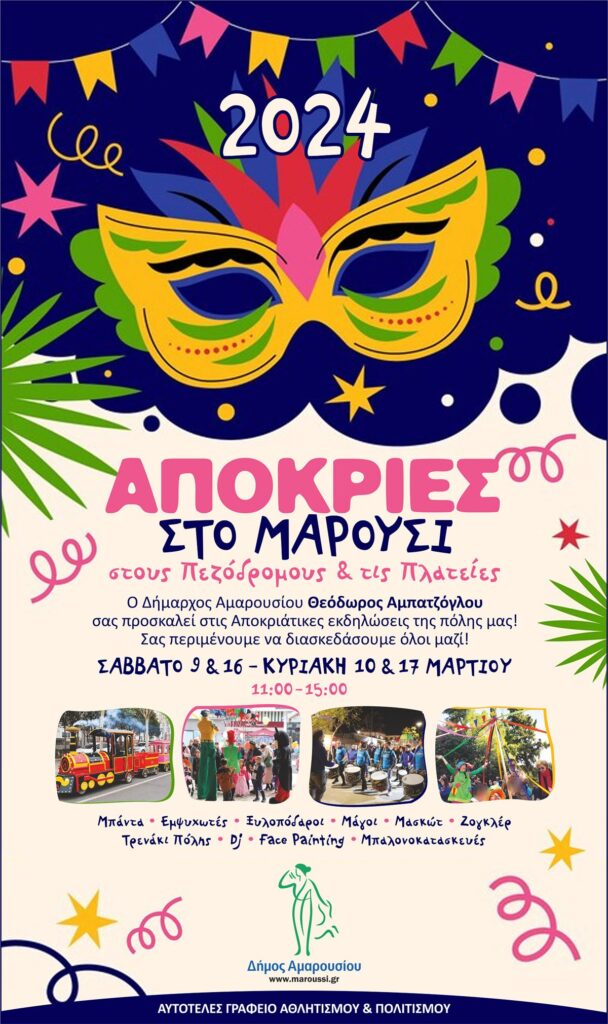 Απόκριες 2024 στο Μαρούσι, στους Πεζόδρομους & τις Πλατείες – Σάββατο 9 & Κυριακή 10 Μαρτίου, Σάββατο 16 & Κυριακή 17 Μαρτίου