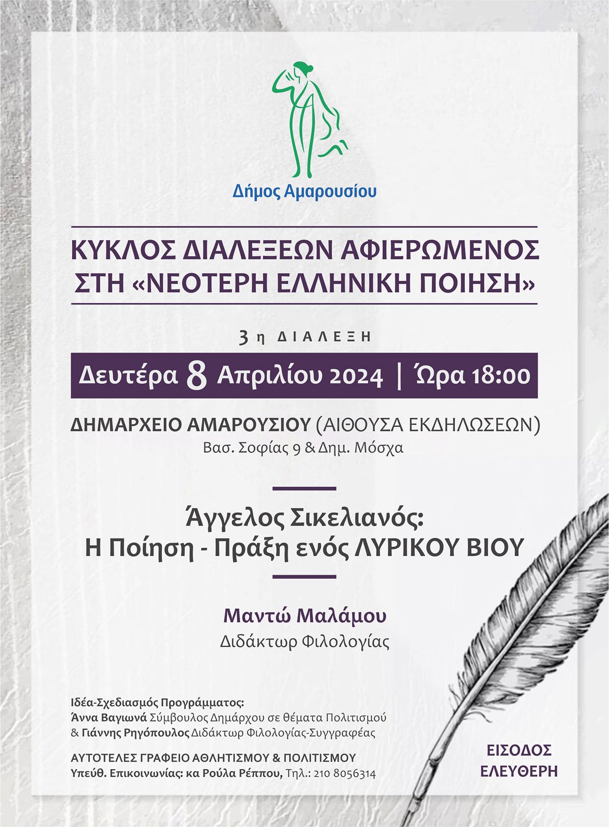 ώρα 18:00, στο Δημαρχείο Αμαρουσίου – Αίθουσα Εκδηλώσεων