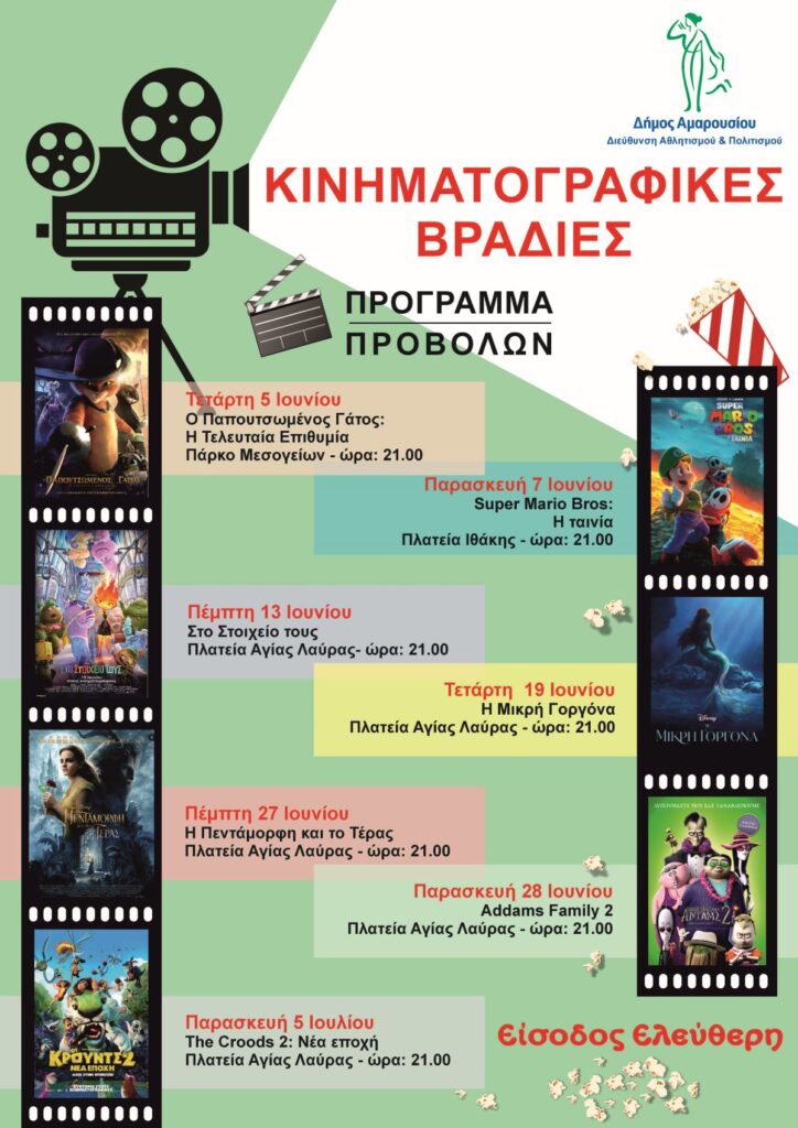 Κινηματογραφικές βραδιές για τα παιδιά και όλη την οικογένεια από το Δήμο Αμαρουσίου