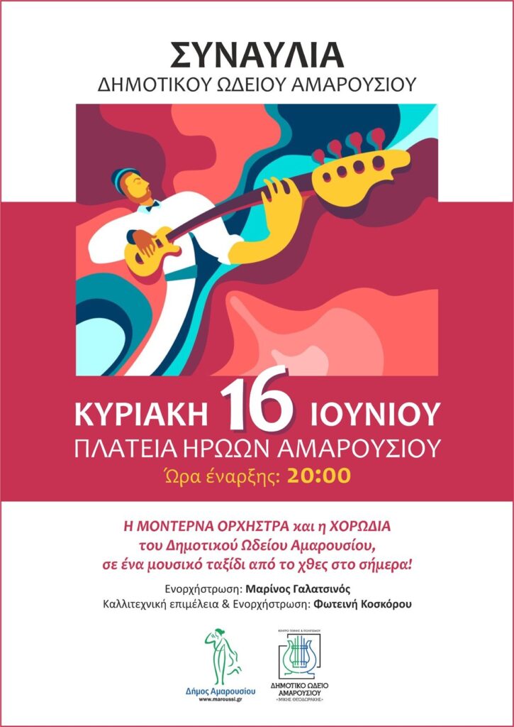 Συναυλία του Δημοτικού Ωδείου Αμαρουσίου σ’ ένα μουσικό ταξίδι από το χθες στο σήμερα! Κυριακή 16 Ιουνίου, ώρα έναρξης: 20:00, Πλατεία Ηρώων Αμαρουσίου